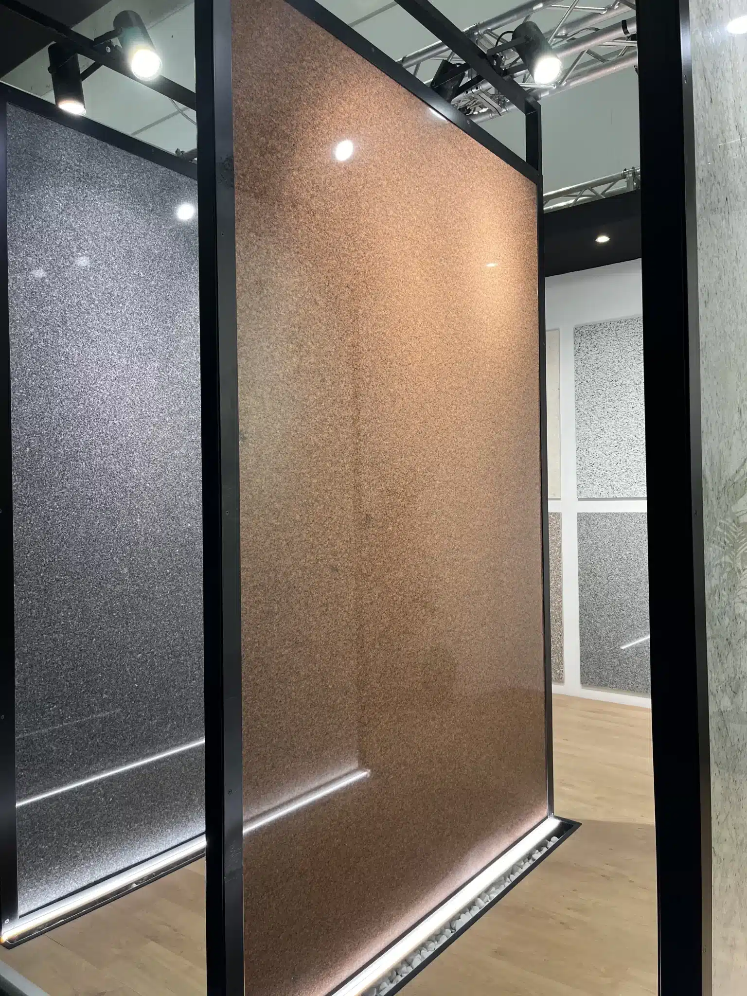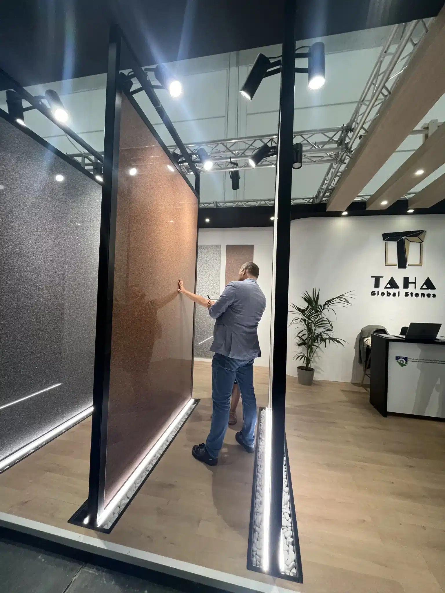 Our booth featured a diverse range of premium stone slabs, meticulously crafted to meet the high standards of our clients. We showcased our innovative online stock feature, which allows customers to view exact measurements and scans of slabs, making TGS a pioneer in accessible and transparent stone selection.